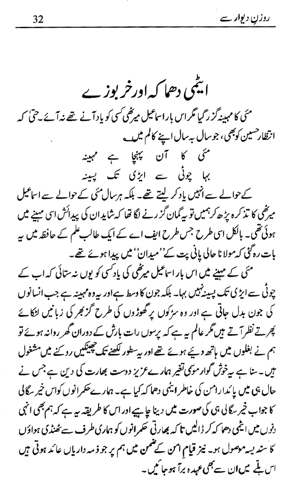 روزن دیوار سے … عطاالحق قاسمی | Millat Online