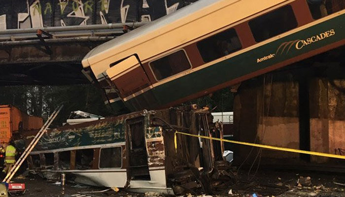 امریکی ریاست واشنگٹن میں ٹرین پٹری سےاترگئی