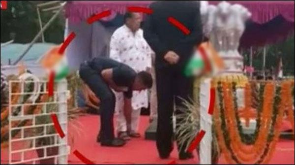 بھارتی وزیرنےگارڈ سے جوتے کے فیتے بندھوائے