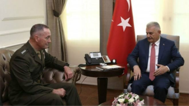 انقرہ (آئی این پی )امریکی فوج کے سربراہ جنرل جوزف ڈنفورڈ نے ترک وزیراعظم سے ملاقات کے دوران ترکی میں حکومت کا تختہ الٹنے کی کوشش کی سخت مذمت کی ہے۔غیر ملکی میڈیا کے مطابق امریکی فوج کے سربراہ جنرل جوزف ڈنفورڈ نے وزیر اعظم بن علی یلدرم سے انقرہ میں ملاقات کی ہے۔ترکی کے […]