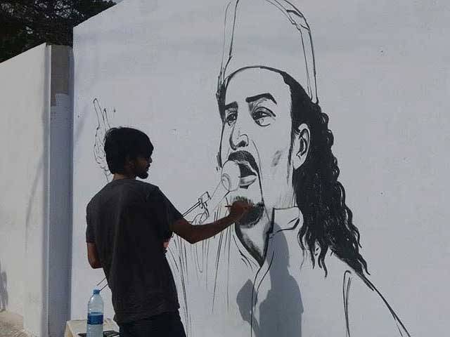 کراچی: 2 نوجوانوں کا دیوارپرپورٹریٹ بناکرامجد صابری کوخراج عقیدت