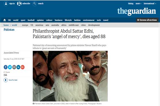 غیرملکی میڈیا کی جانب سےایدھی کوشاندارخراج تحسین