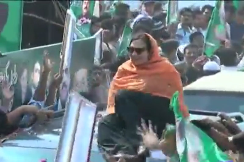 ماروی میمن گاڑی کی چھت پر کھڑی ہو گئیں