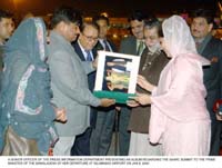 A SENIOR OFFICER OF THE PRESS INFORMATION DEPARTMENT PRESENTING AN ALBUM REGARDING THE SAARC SUMMIT TO THE PRIME MINISTER OF THE BANGLADESH AT HER DEPARTURE AT ISLAMABAD AIRPORT ON JAN 6, 2004. |